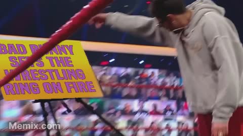 Bad Bunny sets the wrestling ring on fire