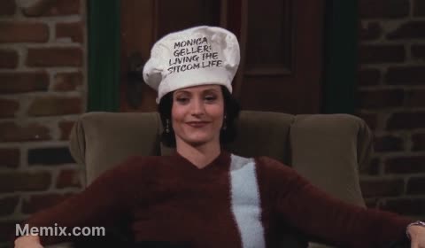 Monica In TV Show Friends Puts On Puffy Chef's Hat And Smiles