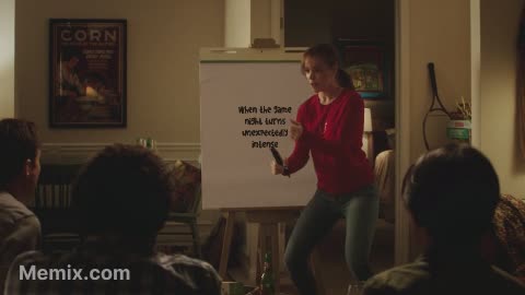 Rachel McAdams In Movie Game Night Writes A Message On White Board