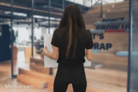 A Girl Turns Around Somewhat Fast To Reveal A Large White Sign